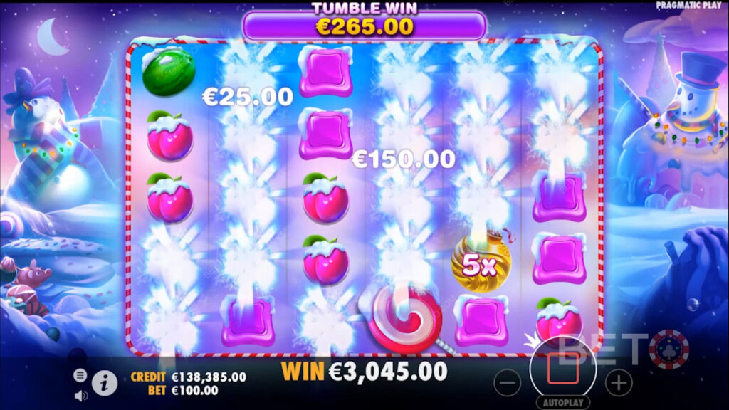 Το Sweet Bonanza Xmas demo θα σε ταξιδέψει σε έναν χειμωνιάτικο παράδεισο, με φόντο παγωμένες κορυφές, πολύχρωμες λιχουδιές και γιορτινή μουσική που σε βάζει άμεσα στο πνεύμα των Χριστουγέννων.
